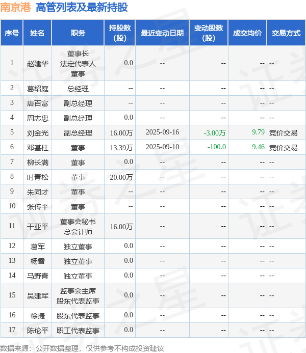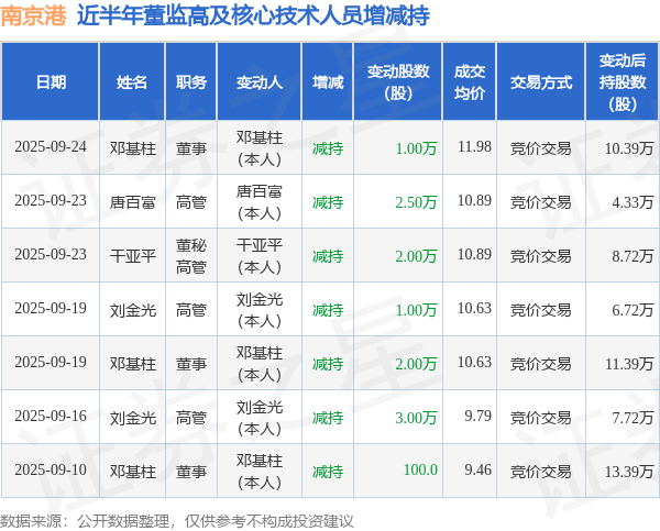 南京港近半年内的董监高及核心技术人员增减持详情如下: